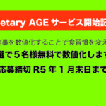 2022年12月26日 / 最終更新日時 : 2023年1月23日 reage 未分類 Dietary AGEサービス開始特別キャンペーン あなたの食事を数値化します。 「Dietary AGEサービス開始特別キャンペーン」をします。 無料(限定5人)であなたの食事を数値化します。 病気や、ダイエットなど気になっていることをお聞かせください。 抽選で5名様を […]